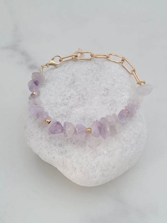 Amethyst Gemstone and Paperclip Chain Bracelet