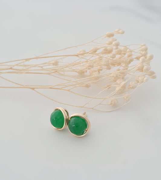 Faceted Green Malaysian Jade Stud Earrings