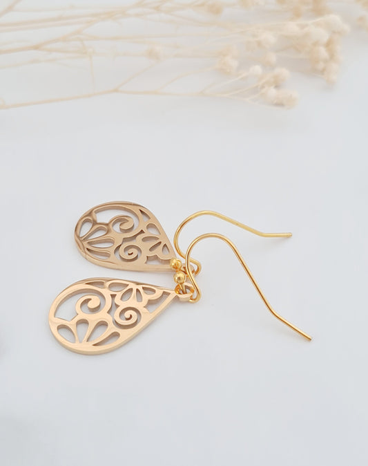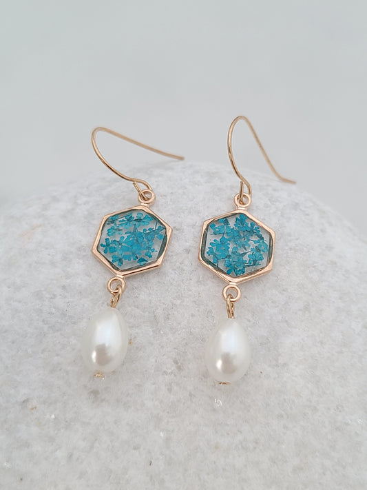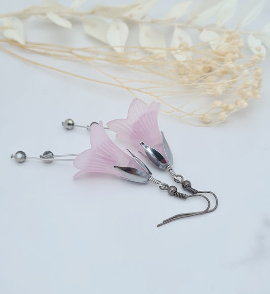 Purple Trumpet Flower and Black Crystal Dangle Earrings