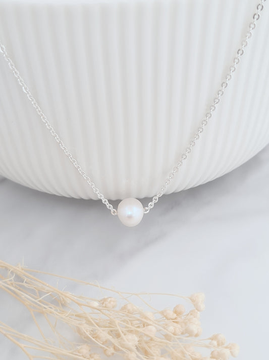 Floating Birthstone Pearl Necklace - Choose your Pearl Colour