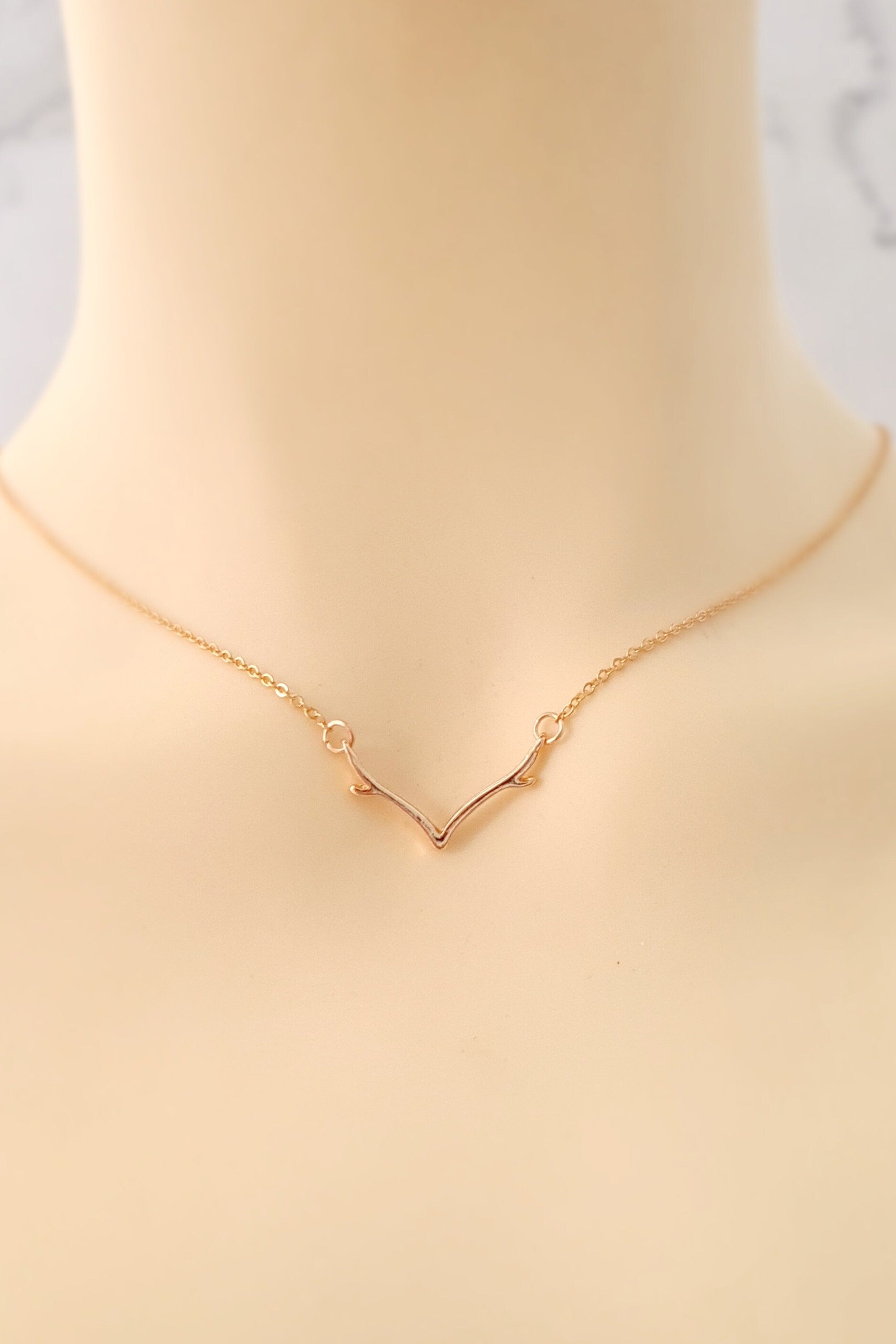 The antler pendant measures 2.5cm wide and gold plated. The chain is also fine and gold plated.