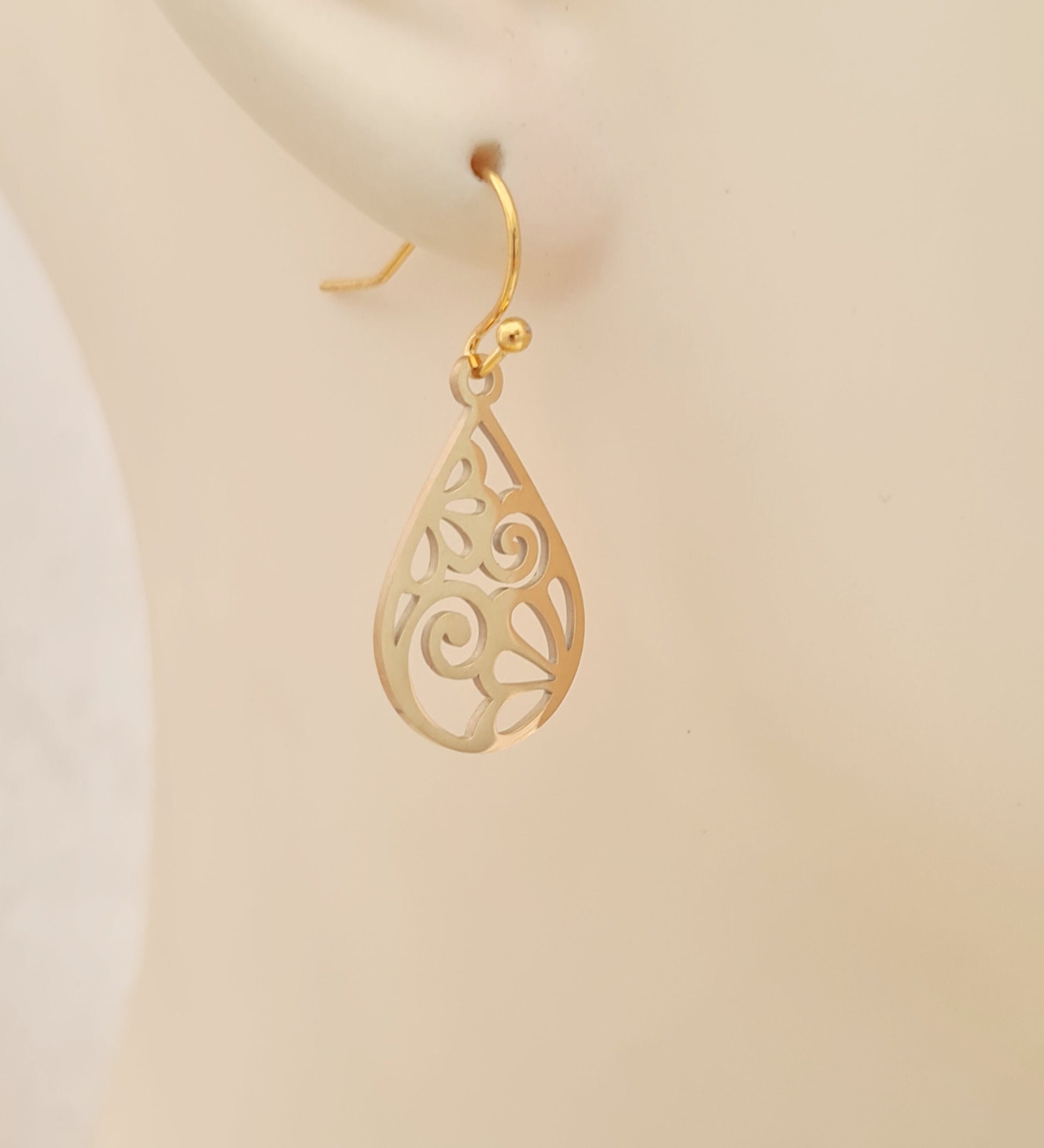 Our dainty yet stunning gold filigree dangle earrings are a perfect blend of elegance and intricacy. They are timeless and will suit almost any outfit whether you are attending a special event, wedding or just simply want to elevate your every day style.