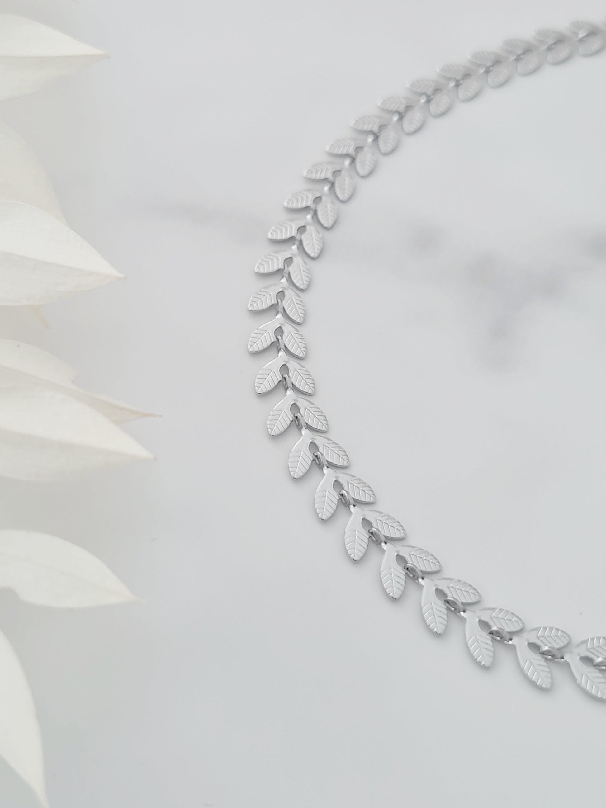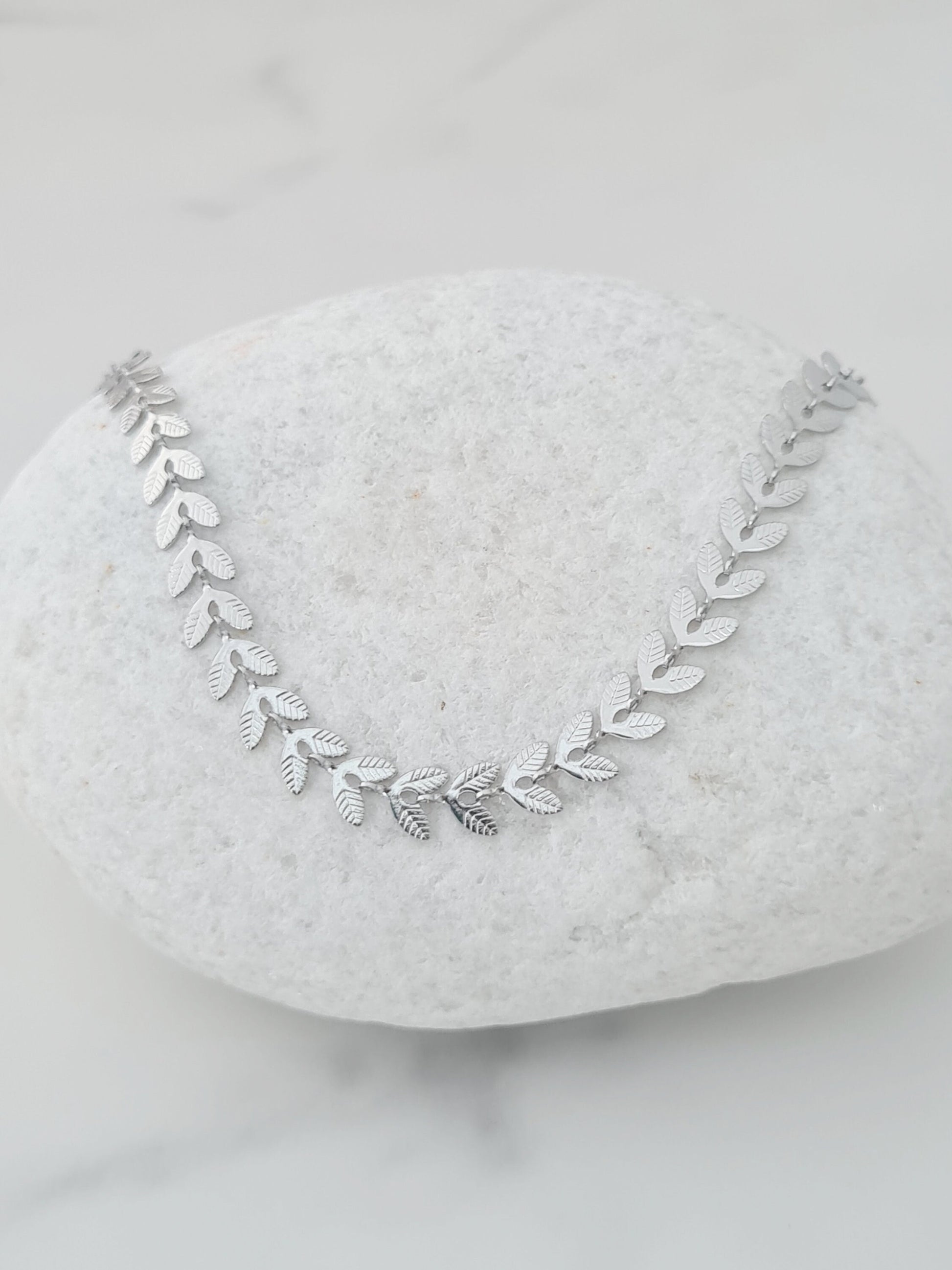 Detailed silver leaf choker/necklace. Dainty and easy to wear. Wear it on its own or layered with other necklaces. Also available in gold in this shop.