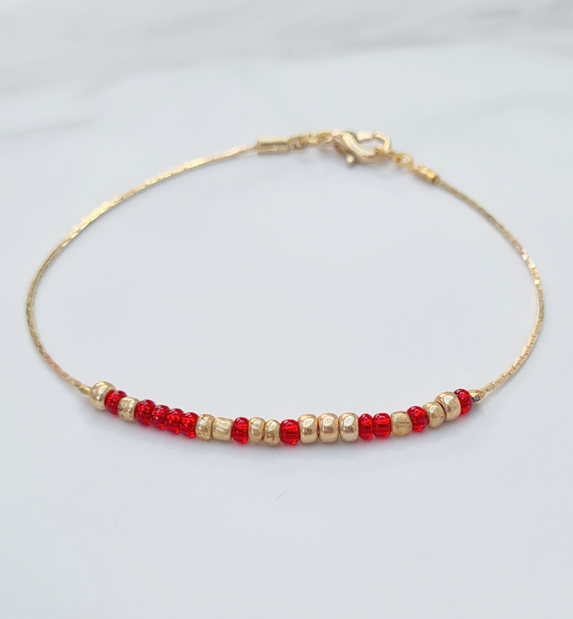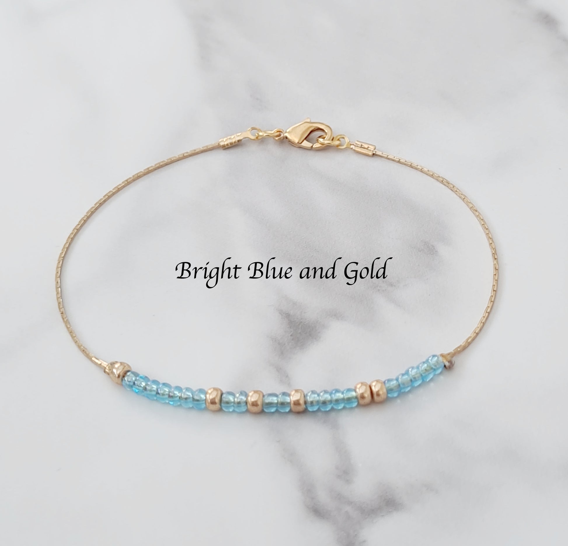 Secret message bracelet. Custom and personalised morse code bracelet in either silver or gold plating with seed beads. Choose your secret message in your colours.