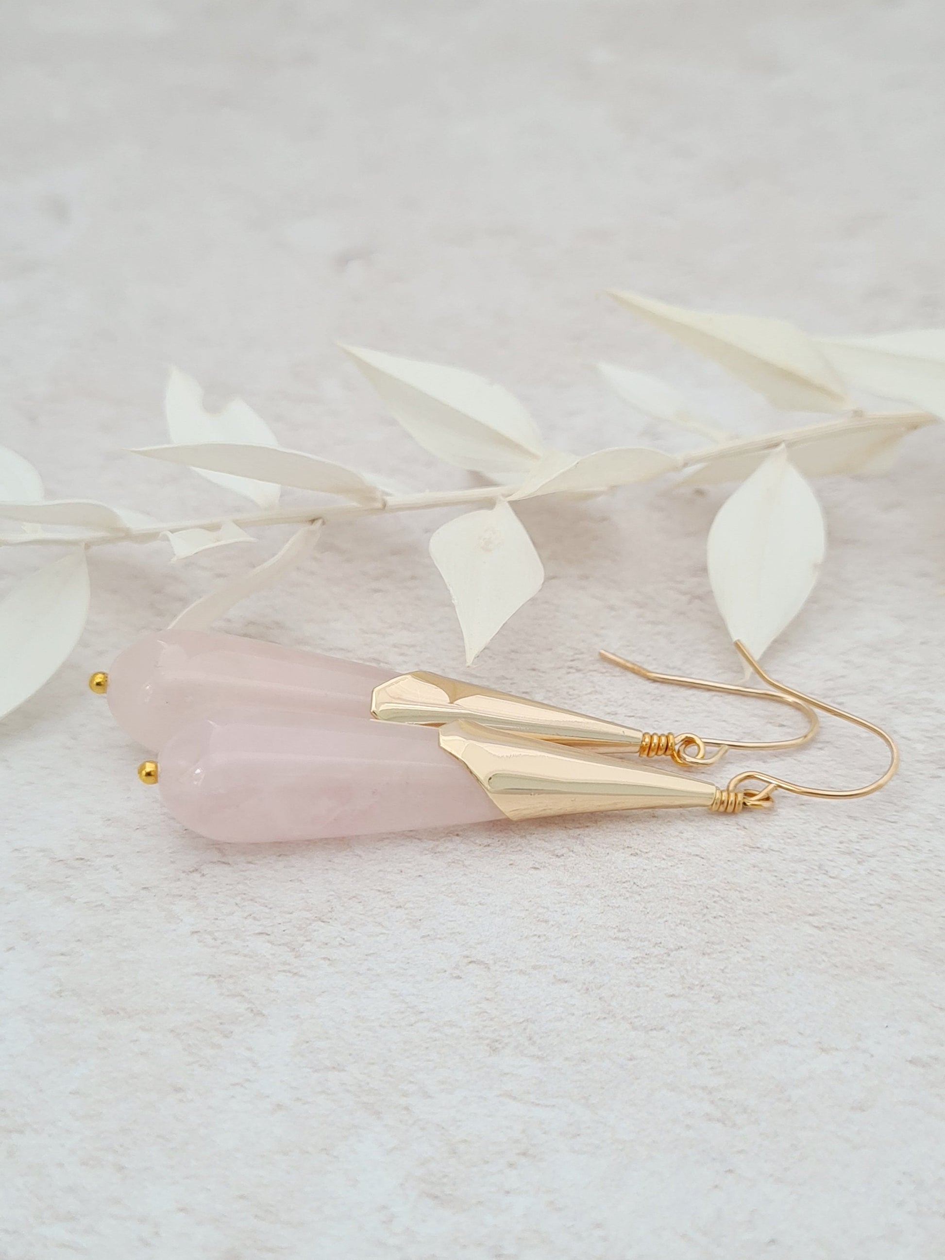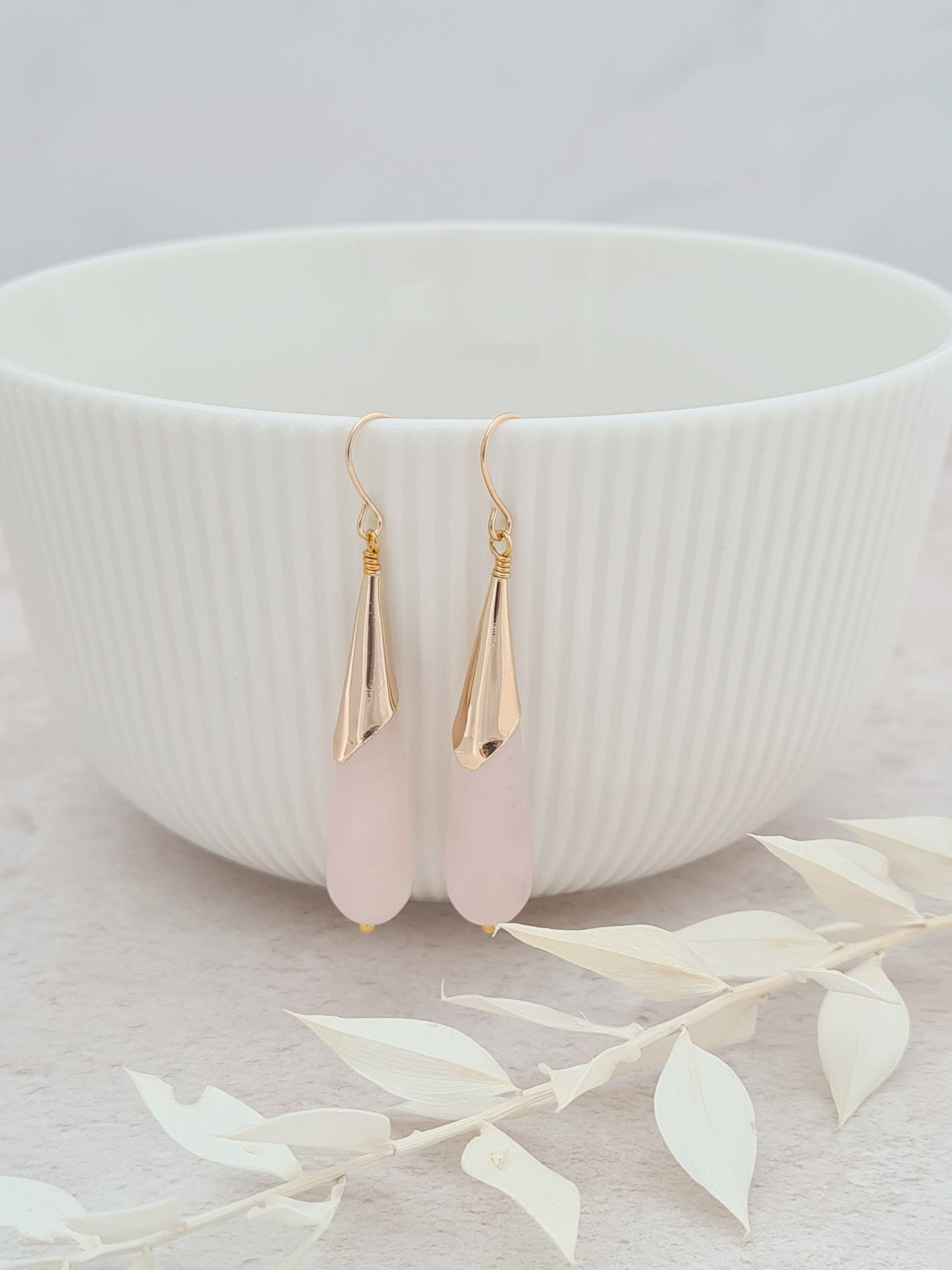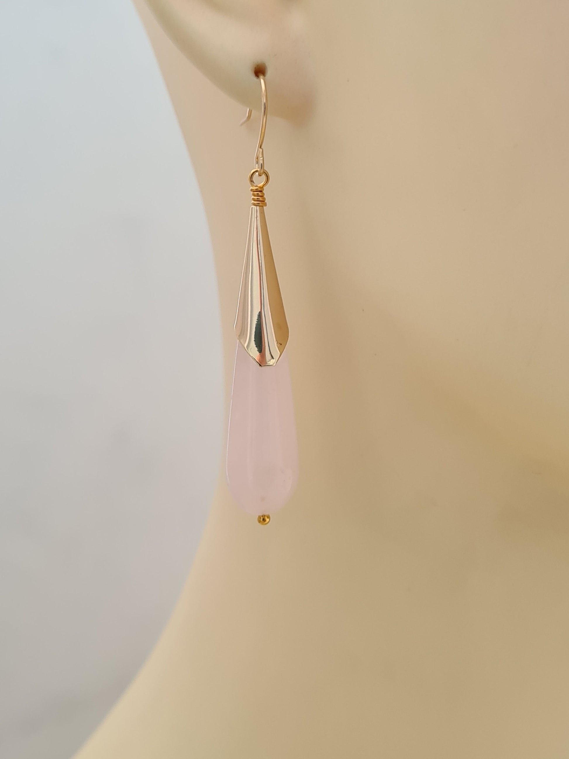 Pale and pretty with gold plated shiny cone bead caps and gold plated French earring wires.